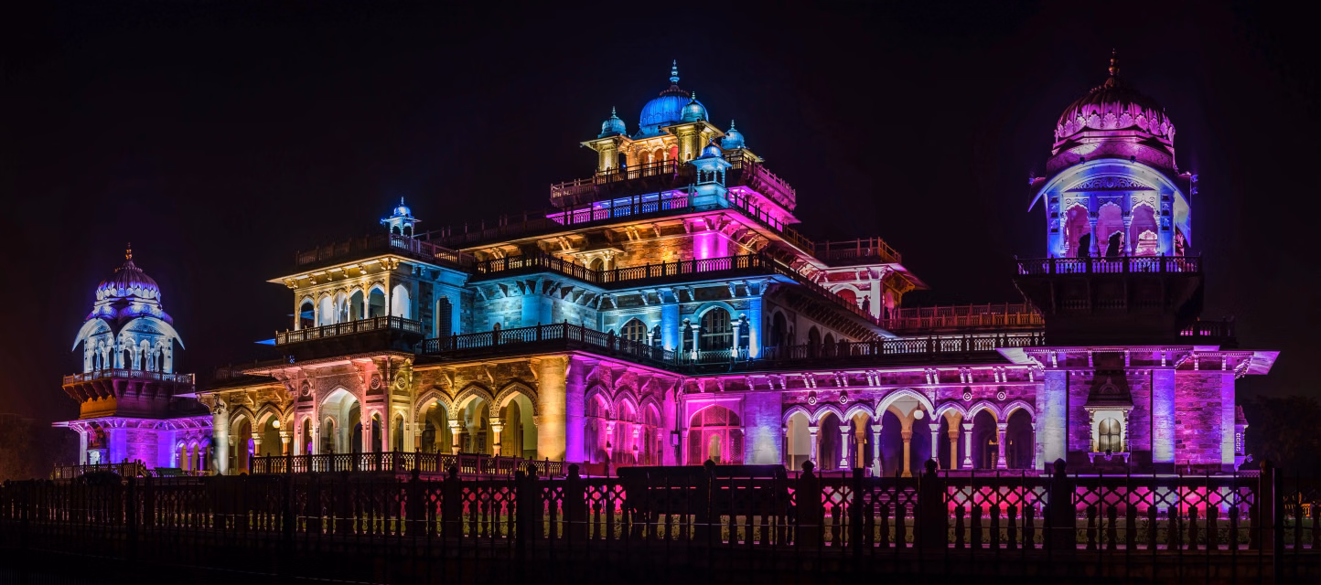 Explore the grand City Palace, showcasing royal armories, museums, and courtyards. End the day with a drive past the charming Albert Hall Museum, beautifully lit at night.
